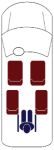 - 2 Seat in the rear with a space for a wheelchair