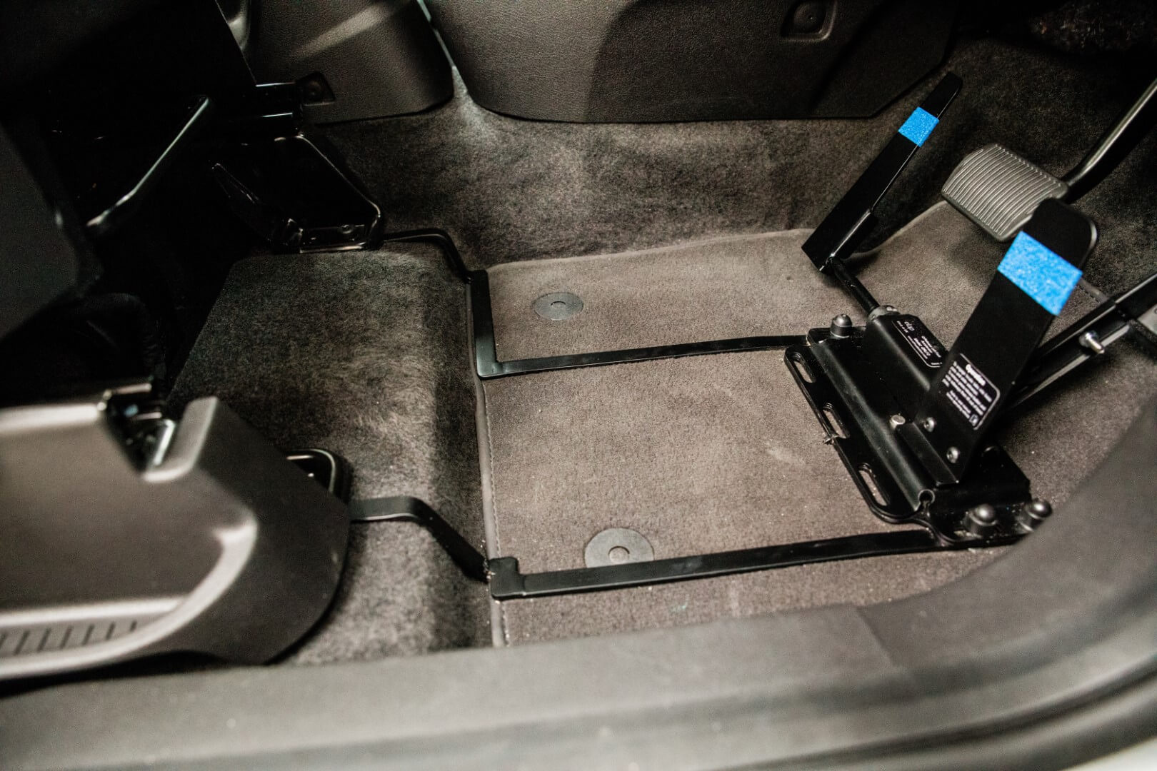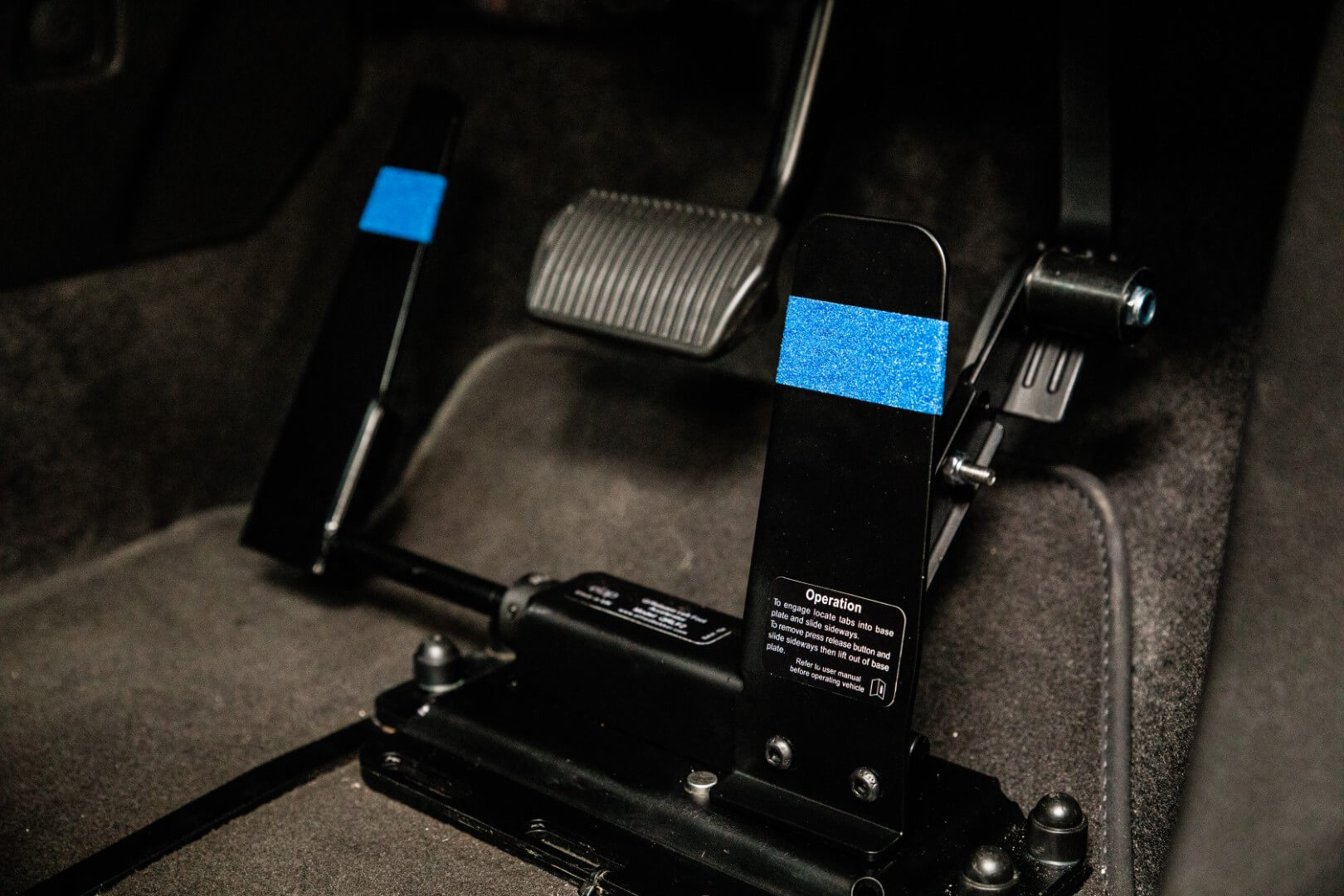 Once the left foot accelerator is removed, you can drive the vehicle using the standard pedals, as it was prior to the left foot accelerator being fitted. To re-fit, you simply place the left foot accelerator in line with the retaining slots on the base plate and then click back into position.