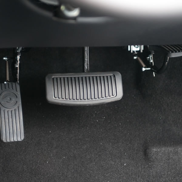 The pedals are assembled to ensure that only one pedal can be deployed at a time. This increases safety and driver confidence. To operate, you simply push the left hand side pedal down and automatically the right hand side pedal goes up and out of the way. This allows the user to drive the vehicle using their left leg for both the brake and accelerator functions.